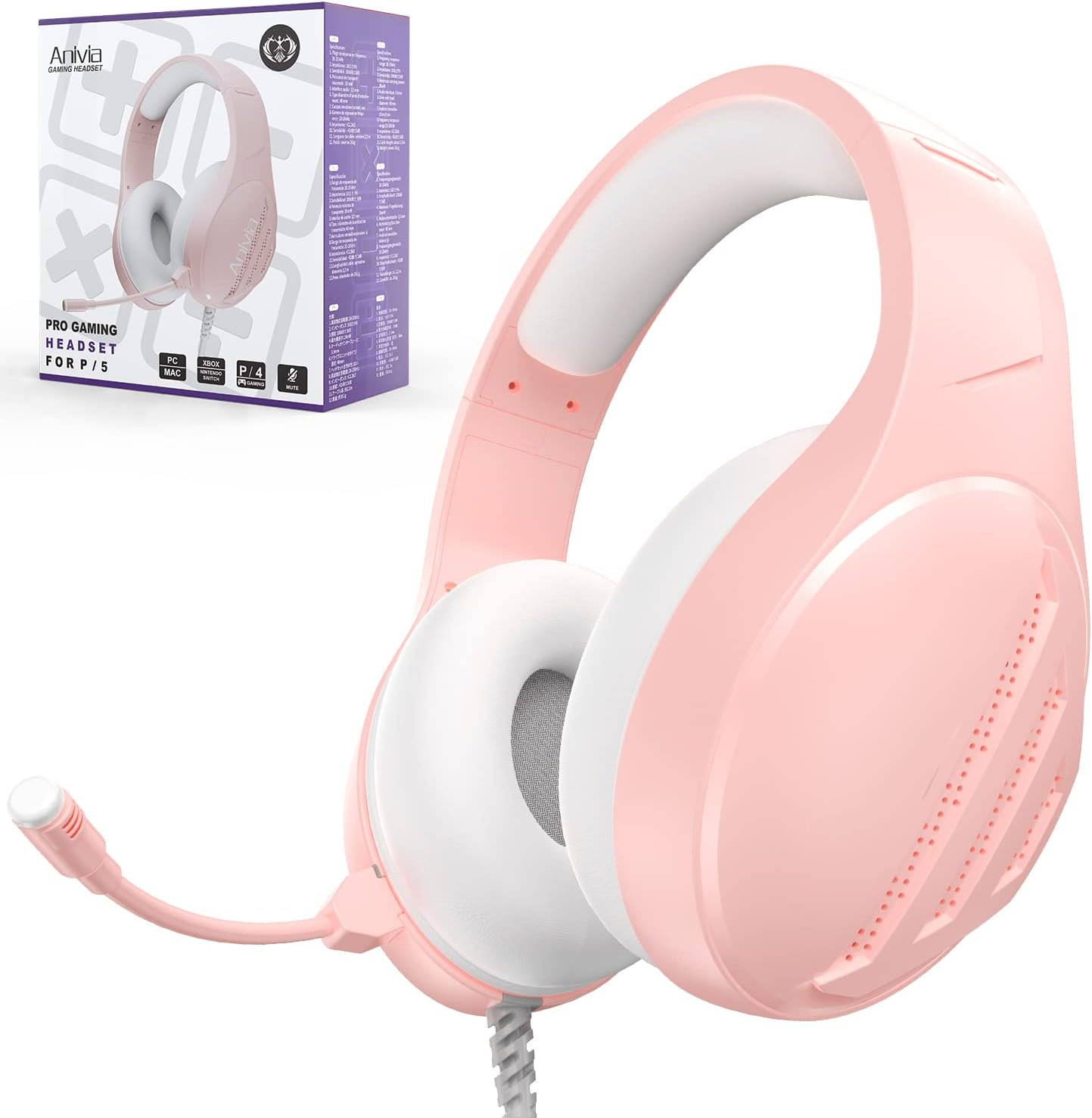 Anivia Computer Headsets Over Ear Headphones Wired Gaming Headset with Mic for PC Mac PS4 PS5 Xbox One, Stereo Surround Sound, Purple