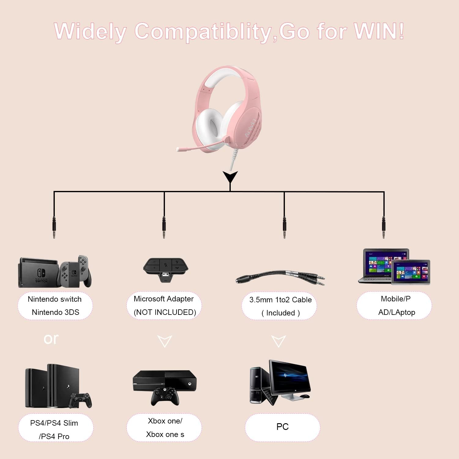• Gaming Headphones with Immersive Gaming Experience : This Stereo Surround Sound gaming headset has advanced audio technology to bring you a vivid soundstage with clear sound and stunning sensory sound, which can restore the original sound of the game and help you to hear your enemies motion in PUBG, CS:GP, COD or Fortnite quite clear. Provide you a better gaming experience.